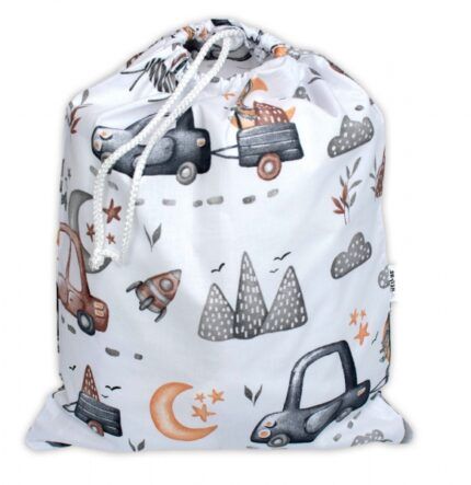 Vrecko na prezuvky 40x32cm, bavlna, Autá – biela/sivá