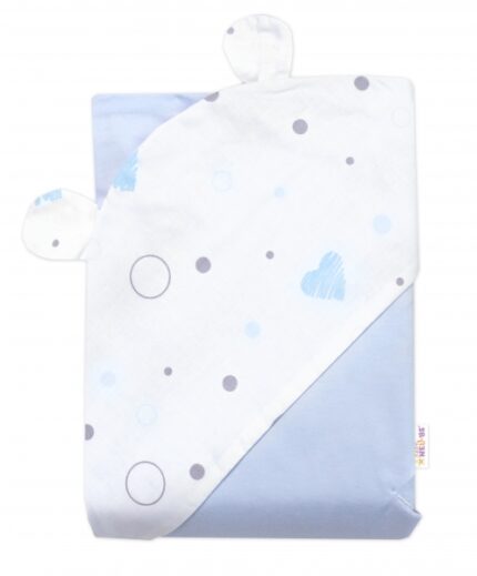 Zavinovacia deka s kapucňou, bavlna + jersey, I love Boy Baby Nellys, modrá