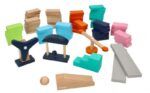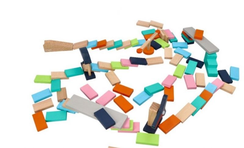 Súprava obsahuje drevené kocky, vďaka ktorým môžete aranžovať rôzne kombinácie, vďaka čomu sa hračka príliš rýchlo neomrzí. Váš vyklápací pruh môže vyzerať zakaždým inak. Ďalším spestrením sú prvky ako otočný kolotoč, veterný mlyn, schodíky alebo guľová brána. Teraz stačí nastaviť štartovací sklz, pritlačiť loptičku a zábava môže začať.