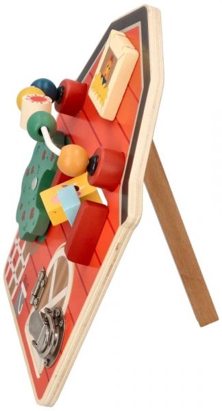 Všetky atrakcie boli pripravené tak, aby zaujali batoľa, povzbudili k objavovaniu a precvičili manuálnu zručnosť. Doska je drevená, na stabilnej nohe.
