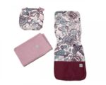 Nová obojstranná vložka do kočíka. Vďaka nepremokavej látke chráni pred nečistotami a možno ju ľahko utrieť vlhkou utierkou. Zadná časť vložky je bavlnená VAFEL, zatiaľ čo predná časť je vyrobená zo 100% organickej bavlny PREMIUM s originálnou potlačou. Má gumičku, vďaka ktorej vložka nekĺže. Systém otvorov pre pásy je kompatibilný a hodí sa k väčšine kočíkov a autosedačiek.