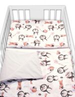 135×100 – obliečky na perinku 135x100cm, obliečky na vankúšik 40×60 cm, mantinel 60x60x60cm – na postieľku 120x60cm.