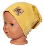 Baby Nellys Hand Made Detská funkčná čiapka s dvojitým lemom – horčicová