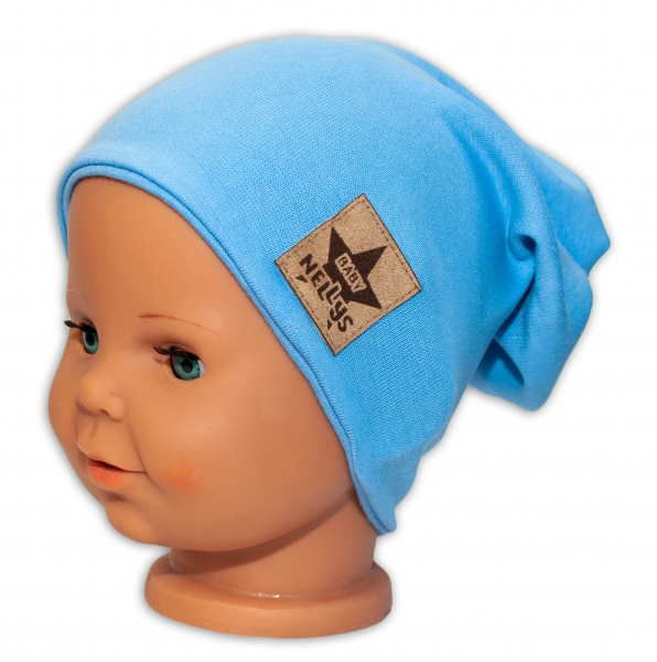 Baby Nellys Hand Made Jarná/jesenná bavlnená čiapka – dvojvrstvová, sv. modrá