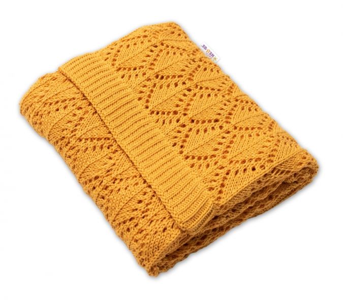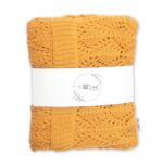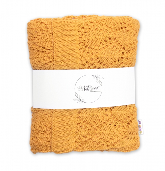 Baby Nellys Luxusná bavlnená háčkovaná deka, dečka LOVE, 75x95cm – horčicová