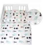 135×100 – obliečky na perinku 135x100cm, obliečky na vankúšik 40×60 cm, mantinel 60x60x60cm – na postieľku 120x60cm.
