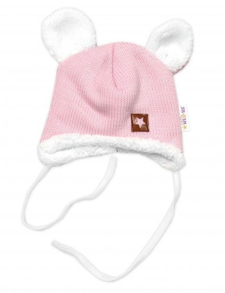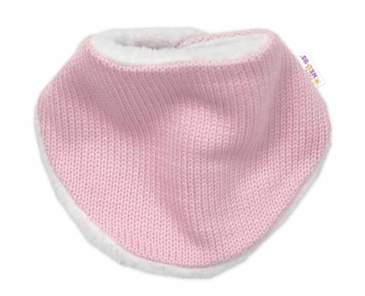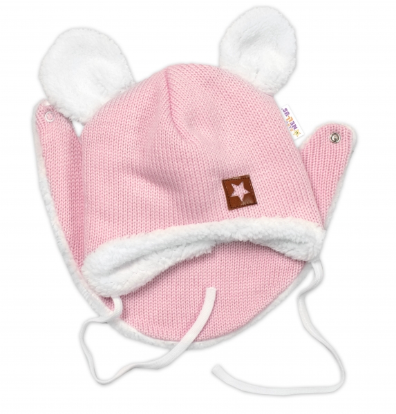 Baby Nellys Pletená zimná čiapka s kožúškom a šatkou Star, ružová, veľ. 68/74