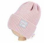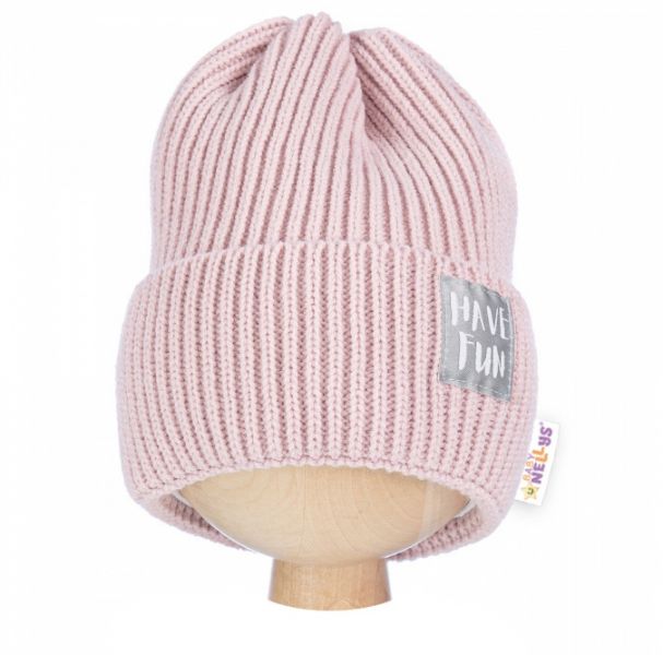 BABY NELLYS Zimná čiapka Have Fun – púdrová