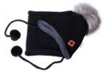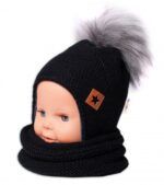 BABY NELLYS Zimná čiapka s fleecom a chlupáčková bambuľka Star + komínok -čierna, 104/116
