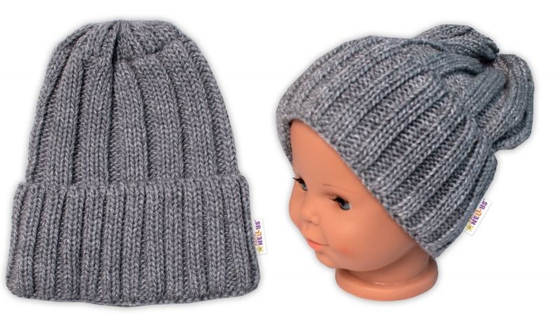 BABY NELLYS Zimná nadčasová čiapka Mom and Baby, šedá