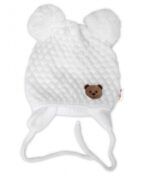 Domov Dojčenské oblečenie Čiapočky, šatky, čelenky, šiltovky, klobúčiky Čiapočky na zimu BABY NELLYS Zimná pletená čiapka Teddy Bear na zaväzovanie, biela, smotana, 68/80, (6-12m)