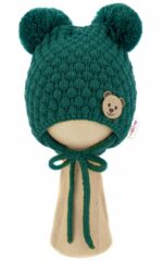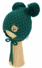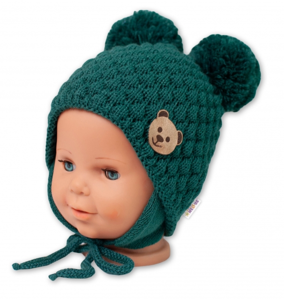 BABY NELLYS Zimná pletená čiapka Teddy Bear na zaväzovanie, zelená