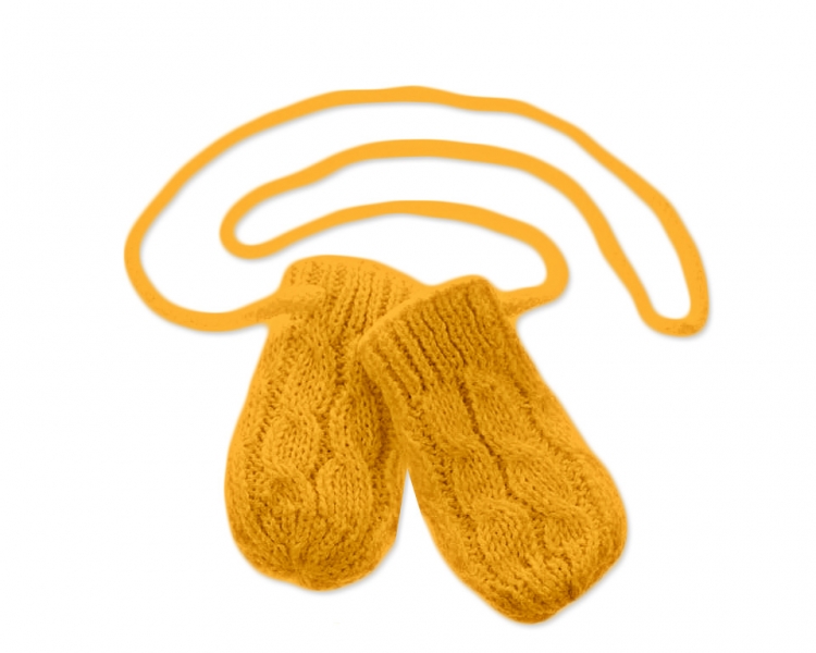 BABY NELLYS Zimné pletené dojčenské rukavičky so vzorom – horčicové