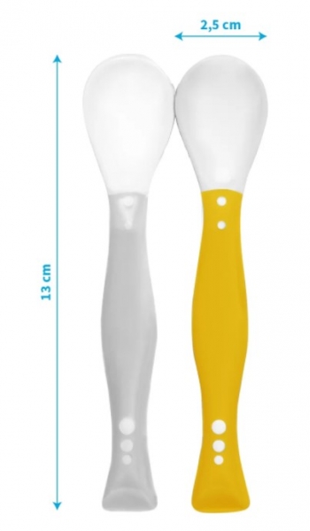 BabyOno Flexibilné lyžičky, 2 ks, žltá/sivá