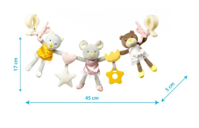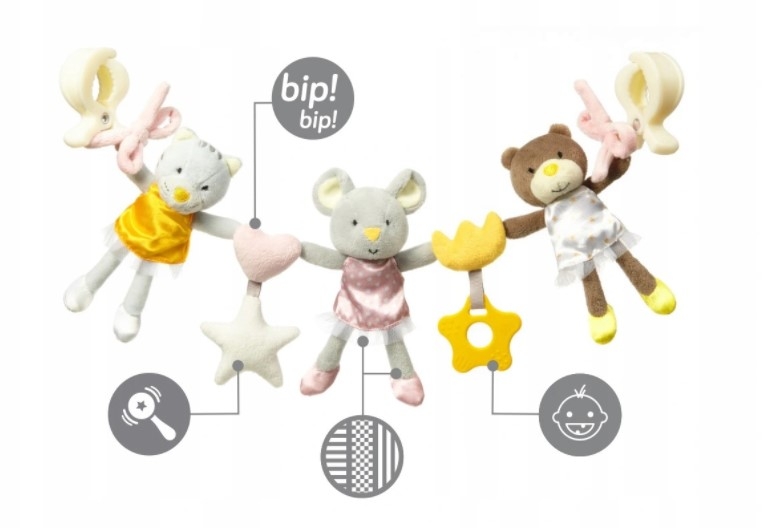 Vzdelávacia hračka Ballerinas zavedie vaše dieťa do rozmanitého sveta farieb, zvukov a tvarov. Vďaka univerzálnemu závesu, vhodnému pre akýkoľvek typ autosedačky alebo kočíka, môže dieťa sprevádzať na cestách aj prechádzkach.