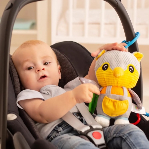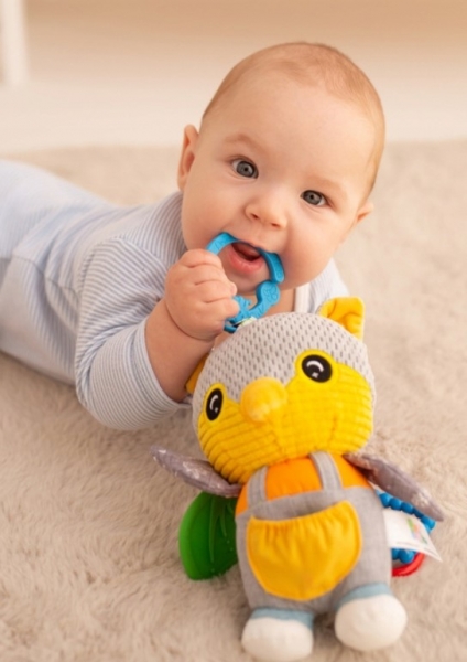 Sova Adela je stvorená na maznanie! Farebná hračka je plná prekvapení. Nájdeme tu malé hryzátka, ktoré sa dajú schovať do kapsičky našitej na brušku sovy, mäkké hryzátko v tvare listu, ale aj šuštiace krídla. Plyšová hračka je vyrobená z materiálov s rôznou textúrou, čo stimuluje zmysly a pomáha rozvíjať kognitívne schopnosti dieťaťa.
