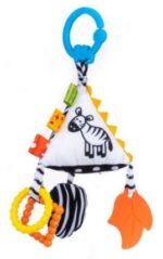 Hračku zdobia farebné hryzátka a praktická pracka, ktorá vám ju umožní pripevniť kamkoľvek.