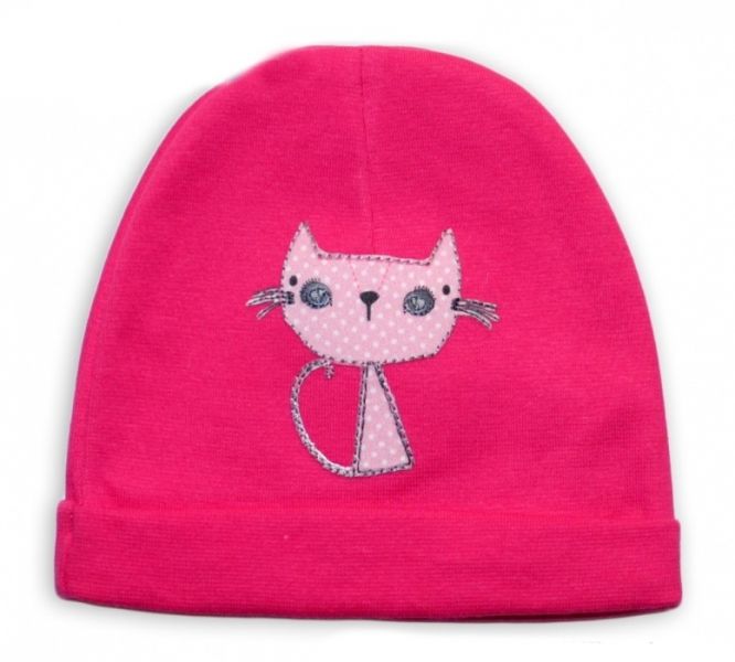 Bavlnená čiapočka Baby Nellys ® – sýto ružová s mačičkou