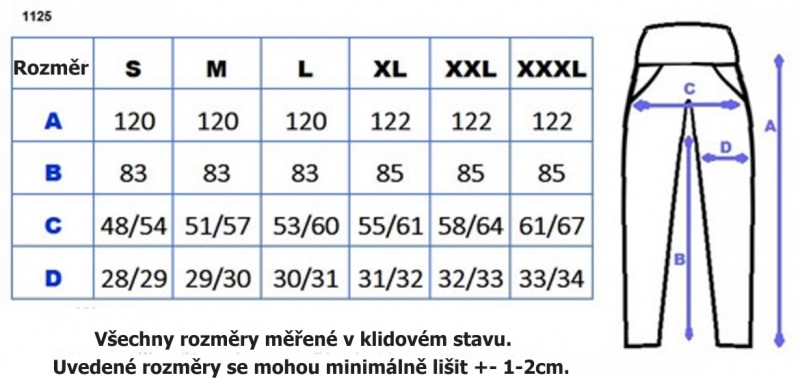 Rozmery sa môžu líšiť o 1-2 cm, merané v kľudovom stave bez natiahnutia.