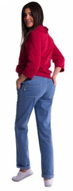 Anatomické tehotenské nohavice, letná úprava. Nemajú klasický tehotenský pás, systém je ideálny aj pre ženy, ktorým vyhovujú bedrove nohavice. Majú klasický rovný strih.