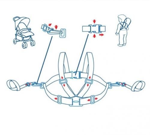 Regulácia dĺžky remienkov umožnuje prispôsobiť ich detskej výške a veku, a tiež veľkosti kočíka.