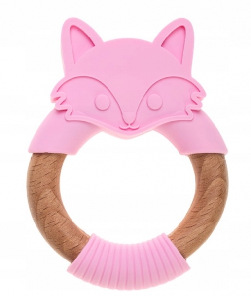 BocioLand Silikónové drevené hryzátko Liška – ružové