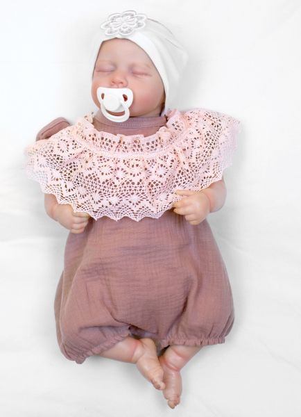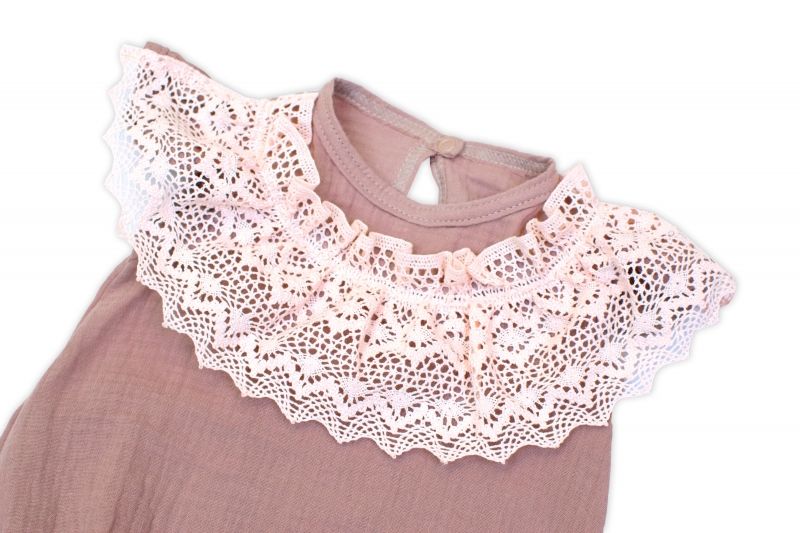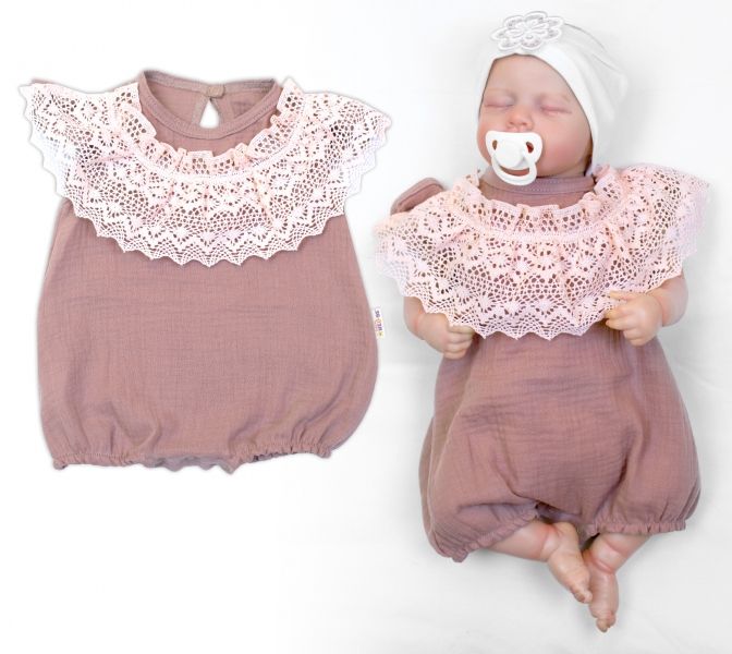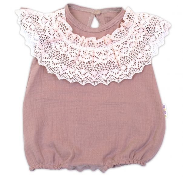 Body s nohavičkami, mušelín, s čipkou – hnedoružová, veľ. 68