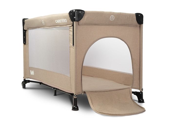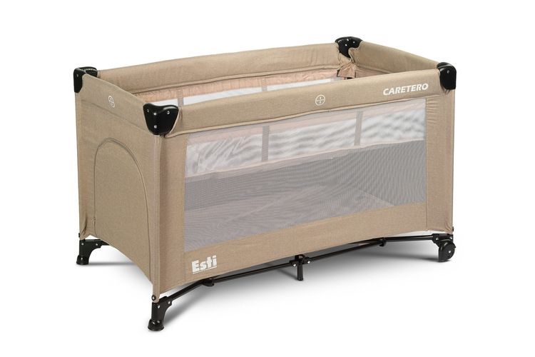 Cestovná postieľka Esti Caretero so sťahovacou bočnícou – béžová, hnědá.