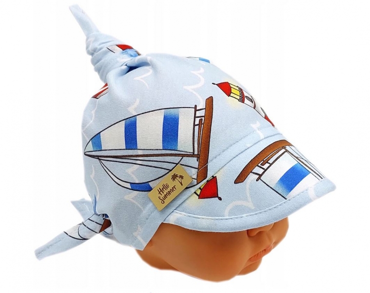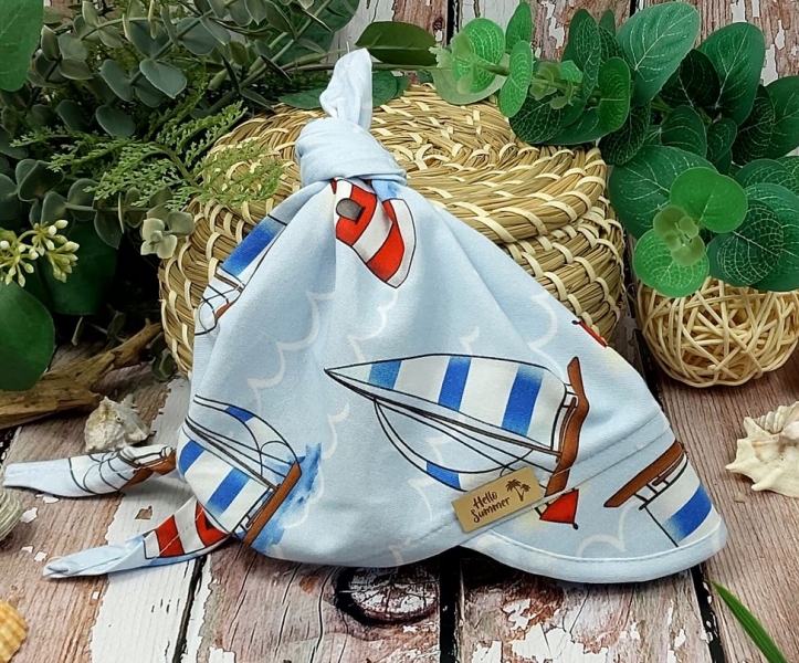 Detská bavlnená šatka so šiltom na zaväzovanie, Premium Baby Nellys, kormidlo
