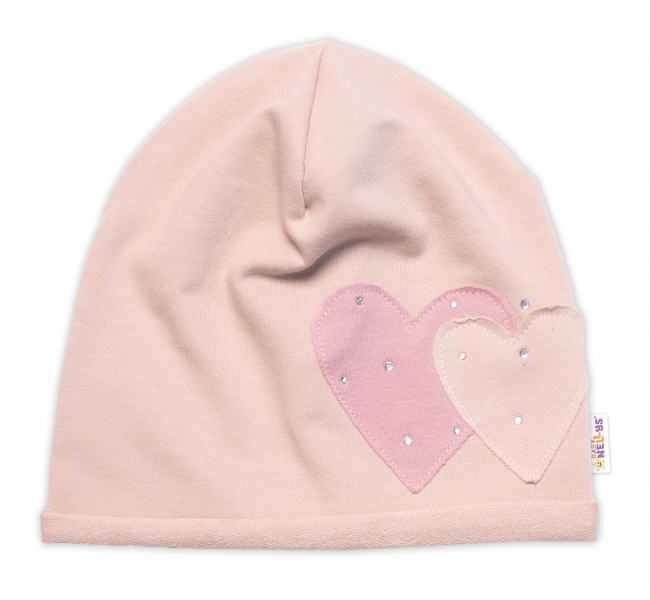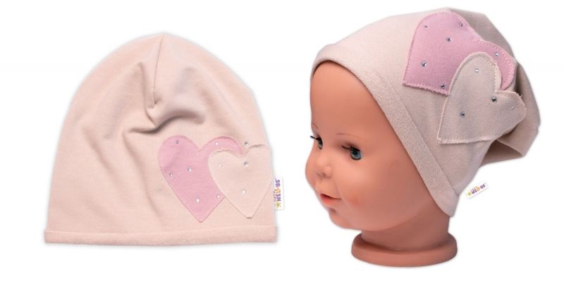 Detská čiapka bavlna, Srdiečka s kamienkami, Baby Nellys, cappuccino 9.8€
