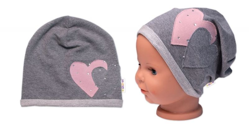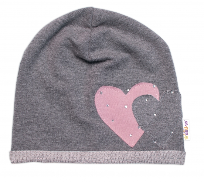 Detská čiapka bavlna, Srdiečka s kamienkami, Baby Nellys, sivá