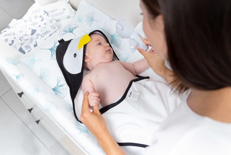 Osuška je vybavená praktickým kapucňou, ktorá chráni hlavičku dieťaťa pred chladom a uľahčuje rýchle vysušenie vlasov. Dizajn doplnený aplikáciami v tvare roztomilých zvieratiek upúta pozornosť dieťaťa a prináša radosť do každodennej starostlivosti o neho.