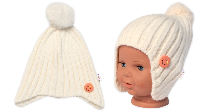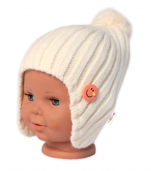 Detská zimná čiapka s brmbolcom Smile, Baby Nellys – smotanová, veľ. 48-54 cm