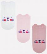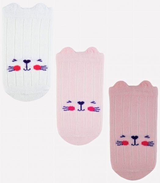 Dojčenské ponožky, 3 páry – Noviti – Mačička, biela/ružová/losos, veľ. 12-18 m