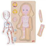 Edukatívne drevené puzzle s motívom ľudského tela.