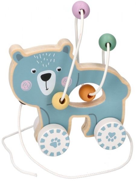 Edukačná drevená hračka ťahacia s labyrintom – Medvedík, Adam Toys