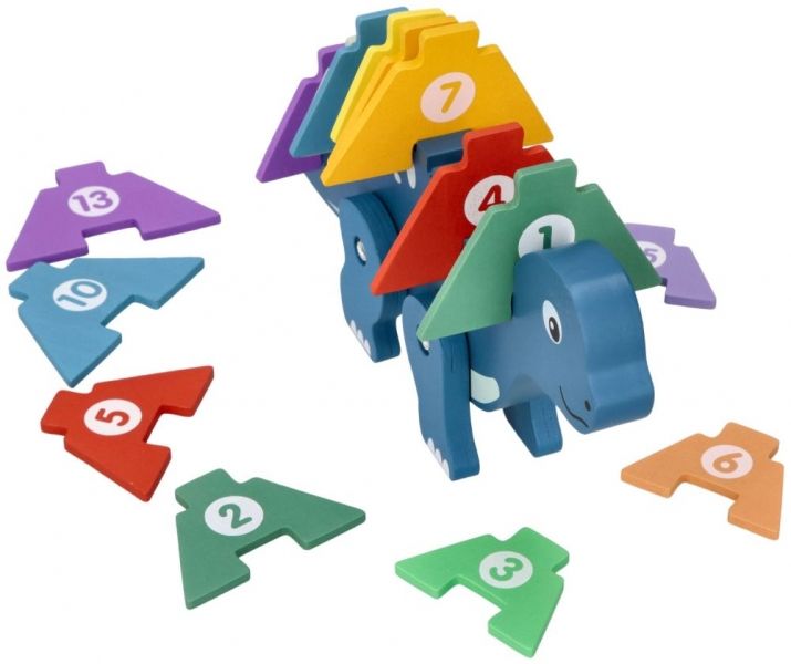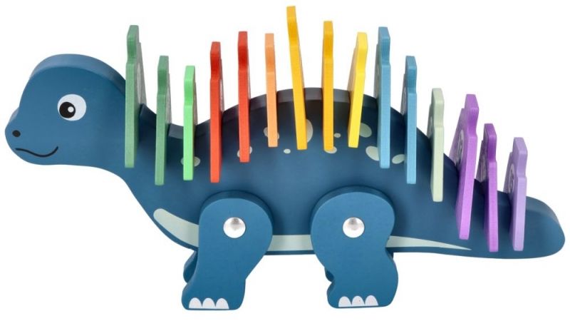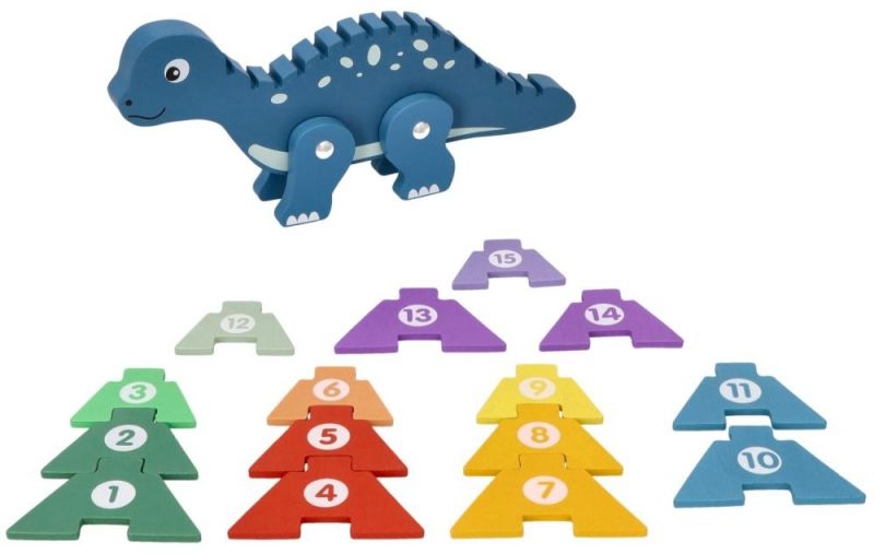 Drevený dinosaurus so sadou čísel od 1-15. Užitočné pri učení sa počítať. Farebné puzzle je možné umiestniť na chrbát dinosaura, čo uľahčuje skladovanie.
