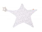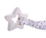 Jemná textilná hračka s odnímateľným hryzátkom v tvare hviezdičky, vyrobená z prírodného kaučuku.