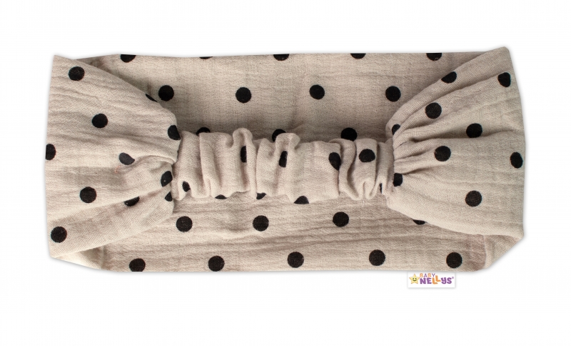 Letná čelenka, bandana, mušelín, Bodka, Baby Nellys – cappuccino