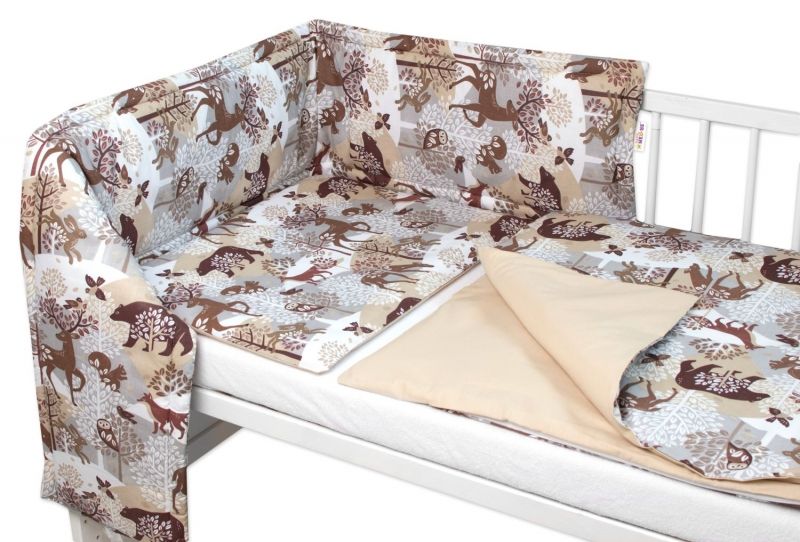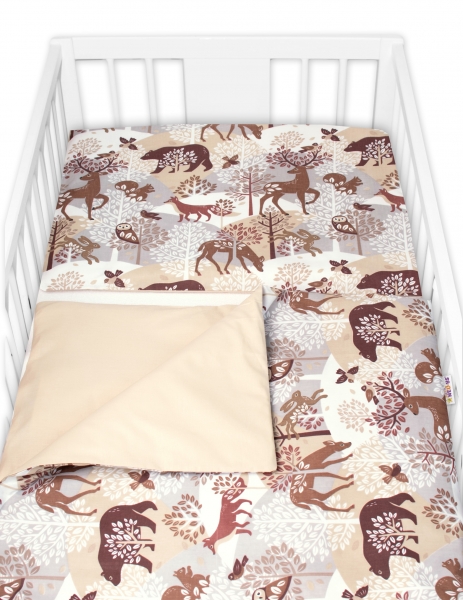3-dielna sada mantinel s obliečkami Baby Nellys, Zvieratká v lese – šedá, 130x100cm