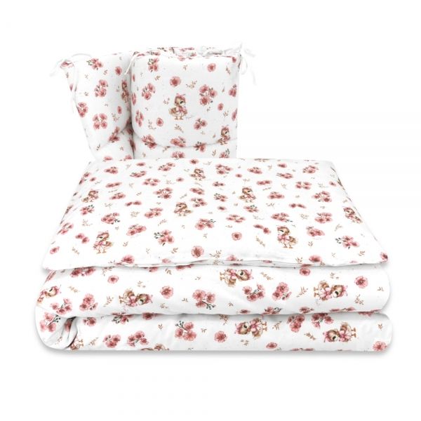 Sada obsahuje: obliečku na prikrývku, obliečku na vankúš a mantinel.