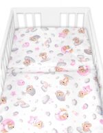 135×100 – obliečky na perinku 135x100cm, obliečky na vankúšik 40×60 cm, mantinel 60x60x60cm – na postieľku 120x60cm.