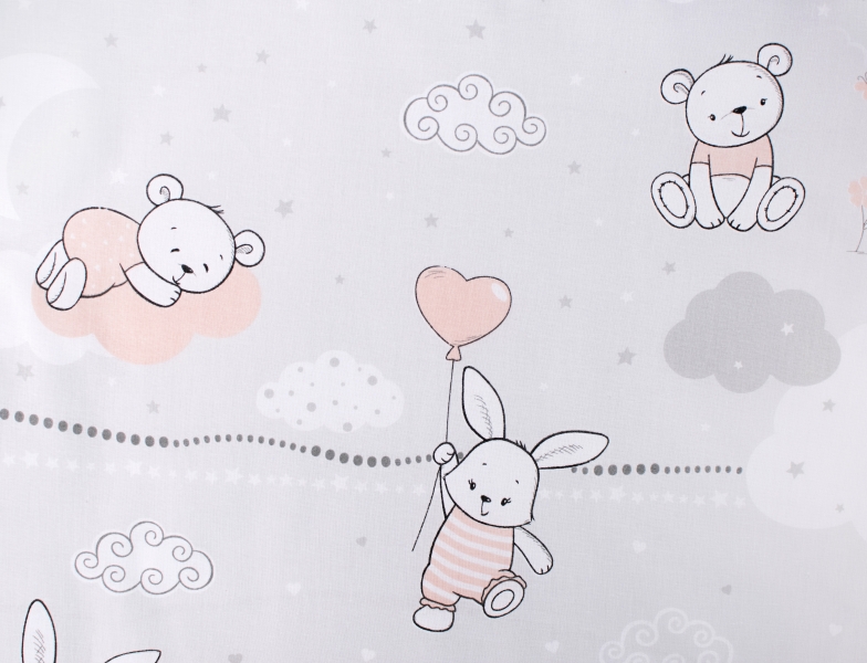 120×90 – obliečky na perinku 120x90cm, obliečky na vankúšik 40×60 cm, mantinel 60x60x60cm – na postieľku 120x60cm.