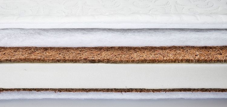 – Výplň: dve kokosové dosky (2×1 cm) oddelené polyuretánovou penou (5 cm).