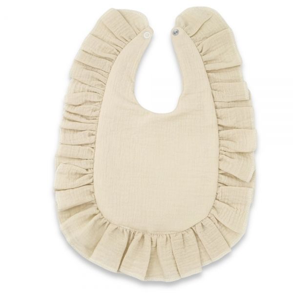 Podbradník s volánikom Baby Nellys, nepremokavý, vyrobený z jemného mušelínu (dvojitá gázovina), 100 % bavlna.