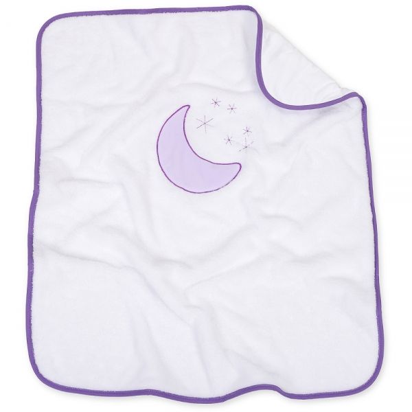 Obojstranná chlpáčková dečka s vyšívkou 75 x 90 cm, Mesiac biela/fialová