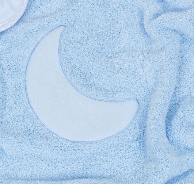 Obojstranná chlpáčková dečka s vyšívkou 75 x 90 cm, Mesiac, modrá