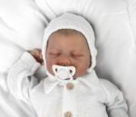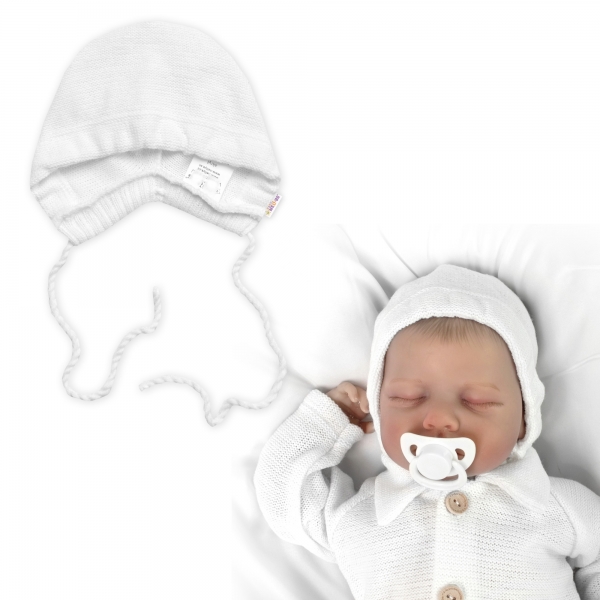 Pletená čiapočka na zaväzovanie bonetka Boy, Hand Made Baby Nellys, biela