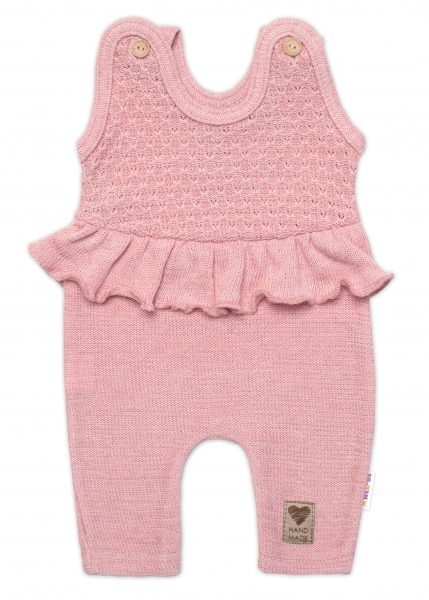 Pletené láclové nohavice Girl s volánikom, Baby Nellys, púdrovo ružové