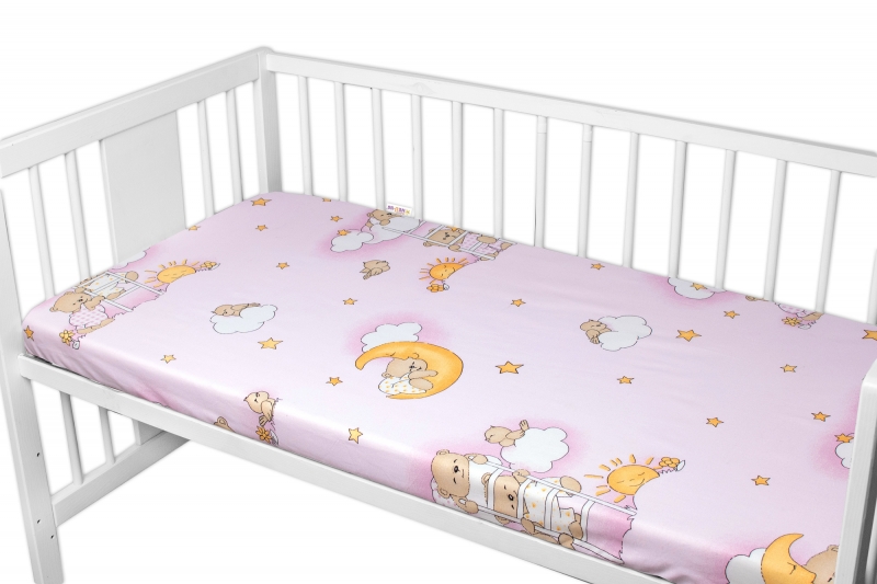 Prestieradlo do postieľky 140x70cm,bavlna Premium, Medvedík na rebríku, ružové